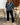 Fasjonable ensfargede bukser med lomme og uregelmessig patchwork