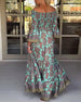 SPESIFIKASJONER Stil: Ferie Materiale: Bomullsblandinger Kjole type: A-line Kjolens lengde: Maxi Halslinje: Off Shoulder Mønstertype: Trykt Ermetype: Utvidet erme Erme lengde: 3/4 erme Detaljer: Rynket Passform type: Løs Årstid: Sommer Anledning: Ferie Pakken inkluderer: 1 x Kjole STØRRELSESTABELL (cm) Størrelse Bryst Lengde S 95 132 M 1...