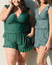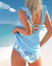 Plissert tankini-badedrakt med halterneck og blomstertrykk