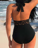 SPESIFIKASJONER Stil: Ferie, Sexy Materiale: 82% Chinlon, 18% Spandex Anledning: Ferie Halslinje: Halter Mønstertype: Ensfarget Erme lengde: Ermeløs Topp type: Ett stykke BH type: Push up Passform type: Vanlig Årstid: Sommer Detaljer: Blonder Pakken inkluderer: 1 x Badedrakt i ett stykke STØRRELSESTABELL (cm) Størrelse Bryst Midje Hofte...