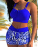 SPESIFIKASJONER Stil: Ferie Materiale: 15% Spandex, 85% Polyester Anledning: Ferie Halslinje: Spaghetti stropper Mønstertype: Trykt Erme lengde: Ermeløs Topp type: Tankini BH type: Bøyle-fri BH Truse type: Shorts Passform type: Skinny Årstid: Sommer Detaljer: Skjære ut Pakken inkluderer: 1 x Tankini STØRRELSESTABELL (cm) Større...