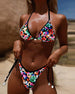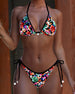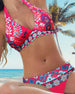 Fargerik bikini med halterhals med trykk