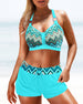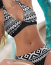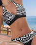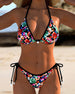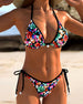 Halter-bikini med blomster- og geometrisk trykk