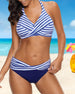 SPESIFIKASJONER Kategori: Bikini Øverst: Trekant Stil: Ferie Mønstertype: Striper Anledning: Stripete, Flerfarget Halskant: Grime Polstret kopp: Ja (ikke-kablet) Materiale: 85% polyester, 15% spandex Pakken inkluderer: 1* bikinisett STØRRELSESOVERSIKT(cm) Størrelse (cm) Bryst Midje Hofte S 70-86 66-76 74-90 M 74-90 70-8...