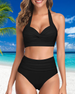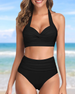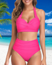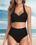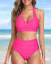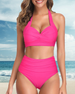 Halter-bikini med høy midje i solid farge