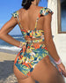 SPESIFIKASJONER Stil: Ferie Materiale: 15% Spandex, 85% Polyester Anledning: Ferie Halslinje: V-hals Mønstertype: Blader Erme lengde: Ermeløs Topp type: Bikini BH type: Bøyle-fri BH Truse type: Høyt snitt Passform type: Skinny Årstid: Sommer Detaljer: Ryggløs, Rufsete Pakken inkluderer: 1 x Bikini STØRRELSESTABELL (cm) Størrelse ...