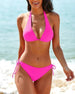 SPESIFIKASJONER Stil: Ferie, Sexy Materiale: Chinlon Anledning: Ferie Halslinje: Halter Mønstertype: Ensfarget Erme lengde: Ermeløs Topp type: Bikini BH type: Bøyle-fri BH Truse type: Naturlig Passform type: Vanlig Detaljer: Bandasje, Rynket Pakken inkluderer: 1 x Bikini STØRRELSESTABELL (cm) Størrelse Bryst(cm) Midje(cm) Hofte(c...