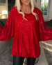 Casual Topp Med Smockede Lange Ärmer Og V-hals