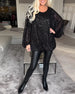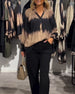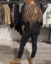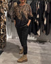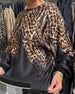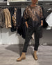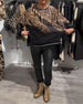 Mote leopardprint bluse med V-hals blonder med patchwork