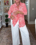 SPESIFIKASJONER Topp type: Skjorte Stil: Uformelt Materiale: 100% Polyester Anledning: Daglig Halslinje: Slag Mønstertype: Blomstret,Leopard Ermetype: Vanlig erme Erme lengde: 3/4 erme Passform type: Løs Årstid: Vår,Høst Detaljer: Spenne Pakken inkluderer: 1 x Skjorte STØRRELSESTABELL (cm) Størrelse Bryst Før Etter Arm Skulder S 95 82...