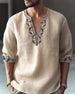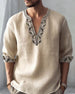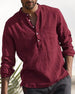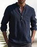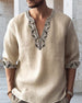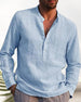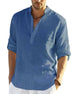FUNKSJONER Materiale: Henley lin herreskjorter er laget av høykvalitets bomullslinstoff, naturlig håndfølelse, pustende og myk å ta på, krymper ikke eller falmer, fukttransporterende holder deg kjølig og avslappet hele tiden. Funksjon: sommer langermet t-skjorte i lin med v-hals og kul henley-hals, brystlomme, løs passform, båndkrage. Anledning...