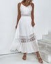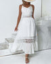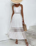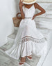 SPESIFIKASJONER Stil: Elegant Materiale: Bomullsblandinger, Blonder Kjole type: Cami Kjolens lengde: Maxi Halslinje: V-hals Mønstertype: Ensfarget Detaljer: Ryggløs, Snøre opp, Uthult Passform type: Vanlig Årstid: Sommer Anledning: Daglig, Parti Pakken inkluderer: 1 x Kjole STØRRELSESTABELL (cm) Størrelse Bryst Lengde S 90 128 M 95 129 ...