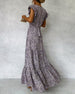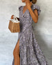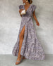 SPESIFIKASJONER Stil: Elegant, Fest Materiale: Bomullsblandinger Kjole type: A-line Kjolens lengde: Maxi Halslinje: V-hals Mønstertype: Trykt Ermetype: Volanger erme Erme lengde: Kort erme Detaljer: Snøre opp, Spalte Passform type: Vanlig Årstid: Vår, Sommer, Høst Anledning: Daglig, Parti Pakken inkluderer: 1 x Kjole STØRRELSESTABELL (cm) St...