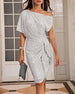 SPESIFIKASJONER Stil: Fest Materiale: Bomullsblandinger Kjole type: Omslags- Kjolens lengde: Knelengde Halslinje: En skulder Mønstertype: Ensfarget Ermetype: Vanlig erme Erme lengde: Kort erme Detaljer: Snøre opp Passform type: Vanlig Årstid: Vår,Sommer,Høst Anledning: Parti Pakken inkluderer: 1 x Kjole STØRRELSESTABELL (cm) Størrelse Bry...