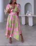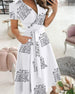 SPESIFIKASJONER Stil: Elegant Kjole type: Rett Halslinje: V-hals Ermetype: Vanlig erme Kjolens lengde: Over kneet Passform type: Løs Mønstertype: Trykt Materiale:Bomullsblandinger Anledning: Daglig Årstid: Vår,Sommer Pakken inkluderer: 1 x Kjole STØRRELSESTABELL (cm) Størrelse Bryst Lengde S 100 90 M 105 92 L 110 94 XL 115...