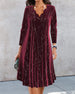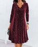 SPESIFIKASJONER Stil: Elegant, Fest Materiale: Polyester Kjole type: A-line Kjolens lengde: Knelengde Halslinje: V-hals Mønstertype: Trykt Ermetype: Vanlig erme Erme lengde: Langermet Passform type: Vanlig Årstid: Vår, Høst, Vinter Anledning: Daglig, Parti Pakken inkluderer: 1 x Kjole STØRRELSESTABELL (cm) Størrelse Bryst Len...