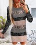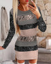 SPESIFIKASJONER Stil: Elegant, Fest Kjole type: shift-dress kjole Kjolens lengde: Over kneet Halslinje: V-hals Mønstertype: Paljett, Gradient Ermetype: Vanlig erme Erme lengde: Langermet Detaljer: Lappeverk Passform type: Vanlig Årstid: Vår, Sommer, Høst Anledning: Natt ute Materiale: Bomull, Polyester Pakken inkluderer: 1 x Kjole STØRRELSE...