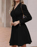 SPESIFIKASJONER Stil: Elegant,Fest Materiale: 50% PU 50% Polyester Kjole type: A-line Kjolens lengde: Over kneet Halslinje: V-hals Mønstertype: Ensfarget Ermetype: Vanlig erme Erme lengde: Langermet Detaljer: Snøre opp Passform type: Vanlig Årstid: Vår,Høst,Vinter Anledning: Daglig,Parti Pakken inkluderer: 1 x Kjole STØRRELSESTABELL (cm) ...