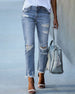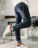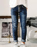 KJENNETEGN: Fasjonable jeans med høy stretch gir full komfort når de bæres. Disse buksene er middels høye, revet foran, frynsede i kantene, glidelås og knapp lukket, og har front- og baklommer, perfekt for din favoritt t-skjorte eller skjorte. SPESIFIKASJONER: Stil: Uformell Type: Blyantbukser Materiale: Denim Midjetype: middels midje M...