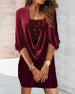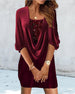 SPESIFIKASJONER Stil: Uformelt, Elegant Materiale: Paljetter, Fløyel Kjolens lengde: Over kneet Halslinje: Firkantet hals Mønstertype: Ensfarget Ermetype: Vanlig erme Erme lengde: 3/4 erme Detaljer: Lappeverk Passform type: Vanlig Årstid: Vår, Sommer, Høst, Vinter Anledning: Daglig, Parti Pakken inkluderer: 1 x Kjole STØRRELSESTABELL (cm) ...