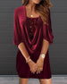 SPESIFIKASJONER Stil: Uformelt Materiale: Bomullsblandinger Kjole type: Rett Kjole Kjolens lengde: Knelengde Halslinje: Rund hals Mønstertype: Ensfarget Ermetype: Vanlig erme Erme lengde: Ni poengs erme Passform type: Vanlig Årstid: Høst, Vinter Anledning: Daglig, Ferie Pakken inkluderer: 1 x Kjole STØRRELSESTABELL (cm) Størrelse Bryst Le...