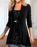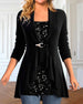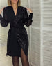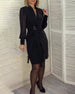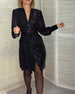 SPESIFIKASJONER Stil: Elegant Materiale: 95% polyester, 5% spandex Kjole type: Tunika Kjolens lengde: Knelengde Halslinje: V-hals Mønstertype: Paljett, Ensfarget Ermetype: Vanlig erme Erme lengde: Langermet Detaljer: Snøre opp Passform type: Vanlig Årstid: Høst, Vinter Anledning: Daglig, Ferie Pakken inkluderer: 1 x Kjole STØRRELSESTABELL (c...