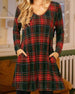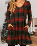 SPESIFIKASJONER Stil: Uformelt Materiale: 100% Polyester Kjole type: H-Line Kjolens lengde: Over kneet Halslinje: V-hals Mønstertype: Plaid Ermetype: Vanlig erme Erme lengde: Langermet Detaljer: Lomme Passform type: Vanlig Årstid: Vår, Høst Anledning: Daglig Pakken inkluderer: 1 x Kjole STØRRELSESTABELL (cm) Størrelsestabell Bryst...