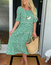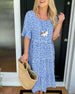 SPESIFIKASJONER Stil: Uformelt Materiale: Bomullsblandinger Kjole type: A-line Kjolens lengde: Midi Halslinje: V-hals Mønstertype: Trykt Ermetype: Vanlig erme Erme lengde: Kort erme Detaljer: Rynket Passform type: Vanlig Årstid: Sommer Anledning: Daglig Pakken inkluderer: 1 x Kjole STØRRELSESTABELL (cm) Størrelse Bryst Lengde S 95 110 M ...