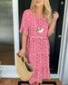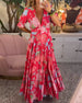 SPESIFIKASJONER Stil: Ferie, Elegant Materiale: 95% polyester, 5% spandex Kjole type: A-line Kjolens lengde: Maxi Halslinje: V-hals Mønstertype: Blomstret, Trykt Ermetype: Pufferme Erme lengde: Kort erme Detaljer: Lomme, Rynket Passform type: Vanlig Årstid: Vår, Sommer, Høst Anledning: Daglig, Ferie Pakken inkluderer: 1 x Kjole STØRRELSESTA...