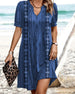 SPESIFIKASJONER Stil: Uformelt Materiale: Bomullsblandinger Kjole type: Rett Kjole Kjolens lengde: Over kneet Halslinje: V-hals Mønstertype: Trykt Ermetype: Vanlig erme Erme lengde: Kort erme Detaljer: Lappeverk Passform type: Vanlig Årstid: Vår, Sommer, Høst Anledning: Daglig Pakken inkluderer: 1 x Kjole STØRRELSESTABELL (cm) Størrelse Brys...