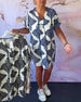 Uformell printet kjole med V-hals og halve ermer