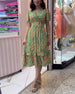 V-hals kjole med delte ermer med ferietrykk