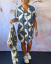 Kjole med V-hals og korte ermer med trykk