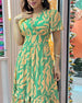 EGENSKAPER Halve lanterne-ermer: De halvlange lanterne-ermene gir et lekent og stilig preg, og gir et særegent og elegant utseende. Praktiske lommer: Funksjonelle lommer blander seg sømløst med kjolens design, og tilbyr praktiske funksjoner uten at det går på bekostning av eleganse. Friske trykk: Denne kjolen er utsmykket med forfriskende trykk...