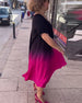 SPESIFIKASJONER Stil: Uformelt Materiale: 100% Polyester Kjole type: A-line Kjolens lengde: Maxi Halslinje: V-hals Mønstertype: Gradient Ermetype: Vanlig erme Erme lengde: Kort erme Detaljer: Rynket Passform type: Vanlig Årstid: Sommer Anledning: Daglig Pakken inkluderer: 1 x Kjole STØRRELSESTABELL (cm) Størrelse Bryst Lengde Ar...