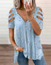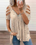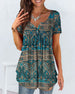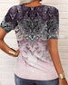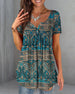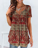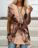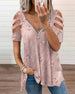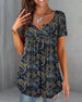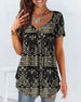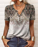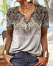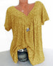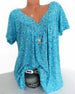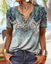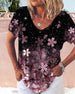 Uformell T-skjorte med blomstertrykk med V-hals og kortermet