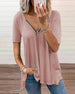 SPESIFIKASJONER Topp type: T skjorte Stil: Elegant Materiale: Blonder, Polyester Anledning: Daglig Halslinje: V-hals Mønstertype: Fargeblokk Ermetype: Raglan erme Erme lengde: Kort erme Passform type: Vanlig Årstid: Vår, Sommer, Høst Detaljer: Lappeverk, Knapper, Blonder Pakken inkluderer: 1 x T-skjorte STØRRELSESTABELL (cm) Større...