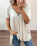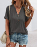 V-hals Løs Kortermet Uformell T-skjorte