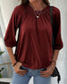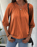 Ensfarget T-skjorte med U-hals og rynker