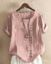 SPESIFIKASJONER Topp type: T skjorte Stil: Ferie Materiale: Bomullsblandinger Anledning: Daglig Halslinje: V-hals Mønstertype: Ensfarget Ermetype: Vanlig erme Erme lengde: Kort erme Passform type: Vanlig Årstid: Vår, Sommer, Høst Detaljer: Knapper Pakken inkluderer: 1 x T-skjorte STØRRELSESTABELL (cm) Størrelse Bryst(cm) Lengde(c...
