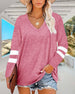 Langermet t-skjorte med v-hals og løs passform for damer