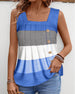SPESIFIKASJONER Topp type: Tank Topp Stil: Uformelt Materiale: 6% Spandex,94% Polyester Anledning: Daglig Halslinje: Firkantet hals Mønstertype: Stripete Erme lengde: Ermeløs Passform type: Vanlig Årstid: Sommer Detaljer: Knapper, Rynket Pakken inkluderer: 1 x Tank-topp STØRRELSESTABELL (cm) Størrelse Bryst Lengde S 90 68 M 95 69.5 ...