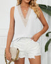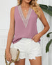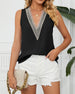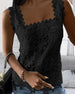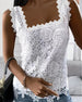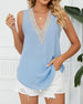 SPESIFIKASJONER Topp type: Tank Topp Stil: Elegant, Forretning Materiale: Chiffon, Polyester Anledning: Daglig, Arbeid Halslinje: V-hals Mønstertype: Ensfarget Erme lengde: Ermeløs Passform type: Vanlig Årstid: Sommer Detaljer: Lappeverk, Blonder Pakken inkluderer: 1 x Tank-topp STØRRELSESTABELL (cm) Størrelse Bryst Lengde S 94 6...