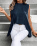 Komfortabel ermeløs underskjorte for kvinner med løse knapper