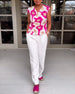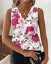 En Rundhalset Ärmeløst Bluse Med Rosemønster