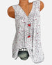 SPESIFIKASJONER Topp type: Tank Topp Stil: Uformelt Materiale: Chiffon Anledning: Daglig Halslinje: V-hals Mønstertype: Trykt Erme lengde: Ermeløs Passform type: Vanlig Årstid: Sommer Detaljer: Knapper Pakken inkluderer: 1 x Tank-topp STØRRELSESTABELL (cm) Størrelse Bryst Lengde Midje S 94 64 88 M 99 65 93 L 104 66 98 XL 1...