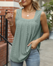 SPESIFIKASJONER Topp type: Tank Topp Stil: Elegant Materiale: Bomullsblandinger Anledning: Daglig Halslinje: Firkantet hals Mønstertype: Ensfarget Erme lengde: Ermeløs Passform type: Vanlig Årstid: Vår, Sommer Detaljer: Uthult, Rynket Pakken inkluderer: 1 x Tank-topp STØRRELSESTABELL (cm) Størrelse Bryst Lengde S 92 68 M 97 69 ...