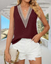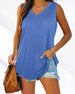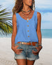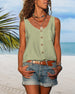 SPESIFIKASJONER Topp type: Tank Topp Stil: Elegant Materiale: Blonder Anledning: Daglig Halslinje: V-hals Mønstertype: Ensfarget Erme lengde: Ermeløs Passform type: Vanlig Årstid: Sommer Detaljer: Knapper Pakken inkluderer: 1 x Tank-topp STØRRELSESTABELL (cm) Størrelse Bryst Lengde S 95 65 M 100 66.5 L 105 68 XL 111 69.5 2XL 117 71...