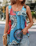 SPESIFIKASJONER Topp type: Tank Topp Stil: Uformelt Materiale: Bomullsblandinger, Spandex Anledning: Daglig Halslinje: U-hals Mønstertype: Blomstret, Trykt Erme lengde: Ermeløs Passform type: Vanlig Årstid: Sommer Detaljer: Lappeverk Pakken inkluderer: 1 x Tank-topp STØRRELSESTABELL (cm) Størrelse Bryst Lengde S 95 70 M 100 71 ...
