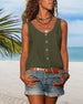 👚Komfortabel ermeløs undertrøye for damer med løse knapper EGENSKAPER: 💦Komfortable & Kul - Ermeløs vestdesign gir sommerkjøling. 🌟Mote - V-hals design, stilig og avantgarde. De tre knappene på halsen gir en følelse av design til den ensfargede t-skjorten. 🌈Fargerik - Syv farger kan velges, det vil definitivt være din favorittfarge. S-6XLs...